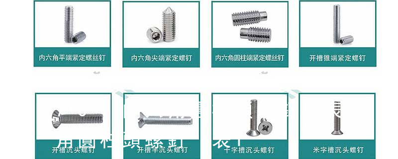 1. 內六角平端緊定螺釘 GB77-85(ISO4026-1977) 材料: 鋼 機械性能:33H 45H ; 不銹鋼 機械性能:A2-70 2. 內六角錐端緊定螺釘 GB78-85(ISO4027-1977) 材料:鋼 機械性能:33H 45H ; 不銹鋼 機械性能 ASME/ANSI B18.3 圓柱頭內六角螺釘 說明:ANSI是美國國家標準。ASME是美國機械工程師學會標準。ASME/ANSI 既是美國國家標準也是美國機械工程師學會標準