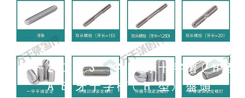 自攻螺釘選用通常的規則:自攻為4個螺距,機械螺釘為3個螺距,這是最小的旋合長度,按照實驗的條件會有所加長。每一個自攻螺釘都是由頭部、桿部和桿部末端三部分組成的。每一個自攻螺釘的構成都有四大要素:頭部形狀、扳 螺栓有:1、方頭螺栓,2、半圓頭方頸螺栓,3、十字槽盤頭螺釘,4、內六角沉頭螺釘,5、方螺母C級,6、蝶形螺母,7、六角頭螺栓,8、十字槽盤頭自攻螺釘。大小有M18、M6、M8、M16、M10、M12、M14、M20等型號。通常用