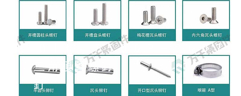 外扳擰:六角、六角法蘭面、六角凸緣、六角花形等;內扳擰:一字槽、十字槽H型(Phillips)、十字槽Z型(Pozidriv)、十字槽F型(Frearson)、四方槽(Scrulox)、復合槽、內花鍵、內六角花形(梅花槽)、內三角、內六角