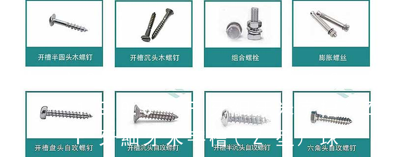 (鐵板牙自攻螺絲) B-2: Plastic Tapping Screw. (塑膠用,自攻螺絲) C: Wooden Screw : 木工螺絲 D: Drywall Screw :水泥墻螺絲 E: Self Drilling Screws鉆尾螺絲(不銹鋼鉆尾螺絲,復(fù)合材料鉆尾螺絲) F:膨脹螺絲,四片膨脹螺絲又