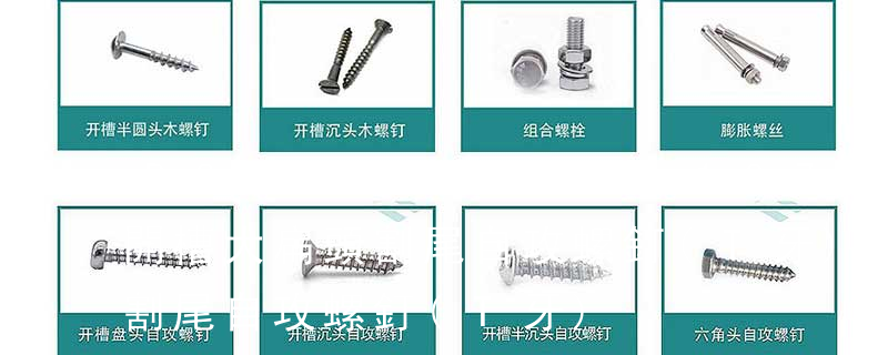 (塑膠用,自攻螺絲) C: Wooden Screw : 木工螺絲 D: Drywall Screw :水泥墻螺絲 E: Self Drilling Screws鉆尾螺絲(不銹鋼鉆尾螺絲,復合材料鉆尾螺絲) F:膨脹螺絲,四片膨脹螺絲又名:四片壁虎。 膨脹螺栓的等級分為:45、50、60、